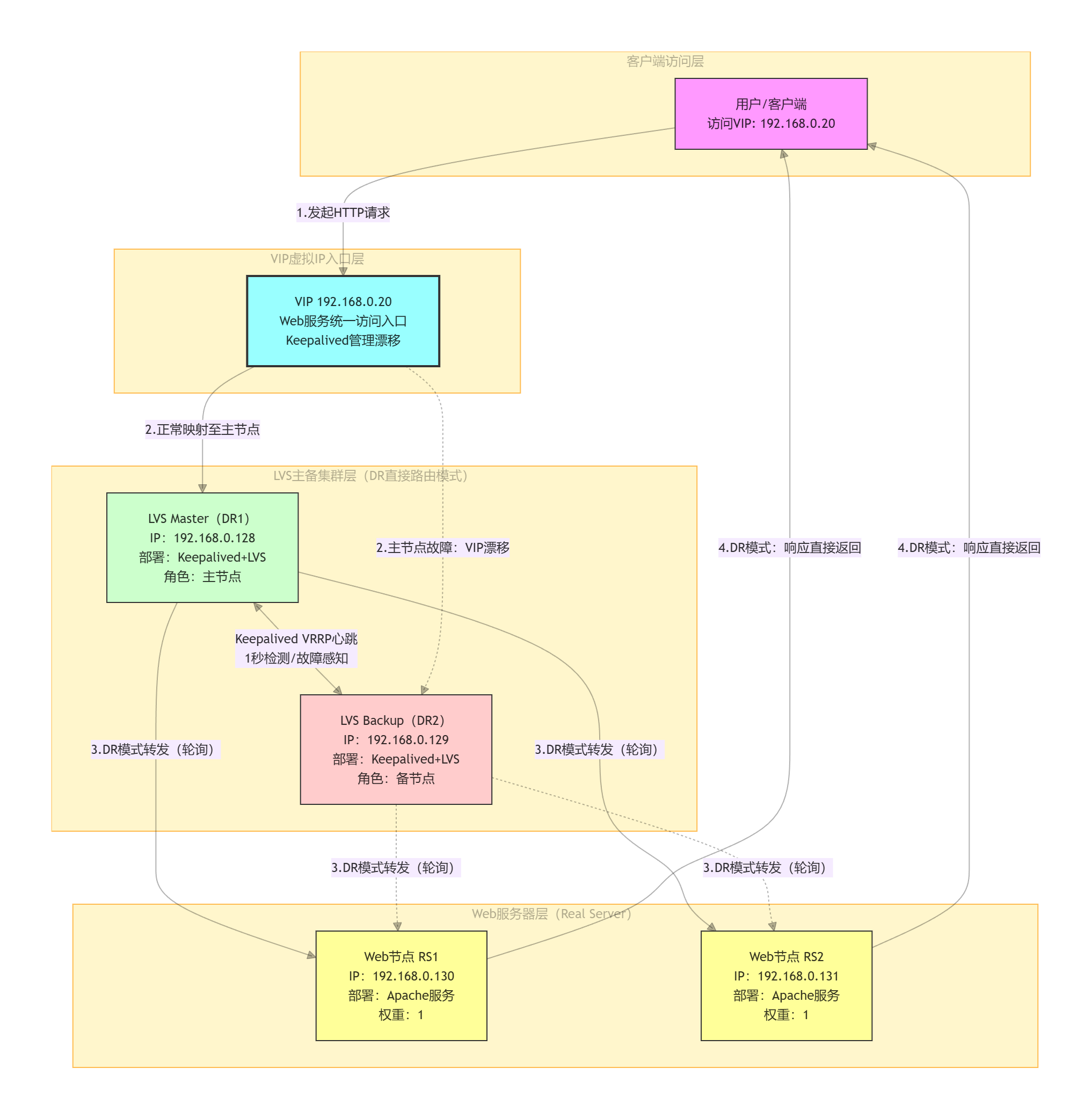 VIP(虚拟IP):192.168.0.10,,对外提供Web服务的统一入口