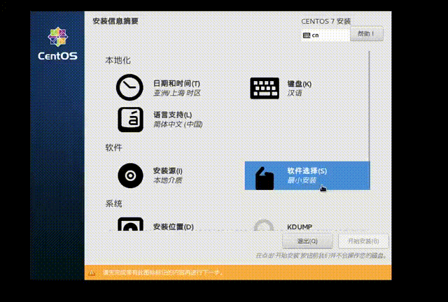 进入「安装信息摘要」页面,需完成所有带感叹号的配置项,其中 4 项为核心必配项: