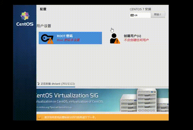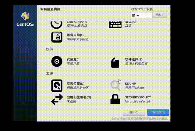 所有配置项完成后,确认无感叹号提示,点击右下角「开始安装」,进入系统安装流程,同步进行用户配置。