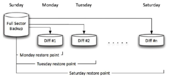 周三下班备份时,就和增量备份有本质区别了:它会备份【周一全量备份完成后,到周三下班,所有变化的全部数据】,不管周二有没有备份过,都只以周一的全量为基准,把到当前为止所有的变化都备份下来)。