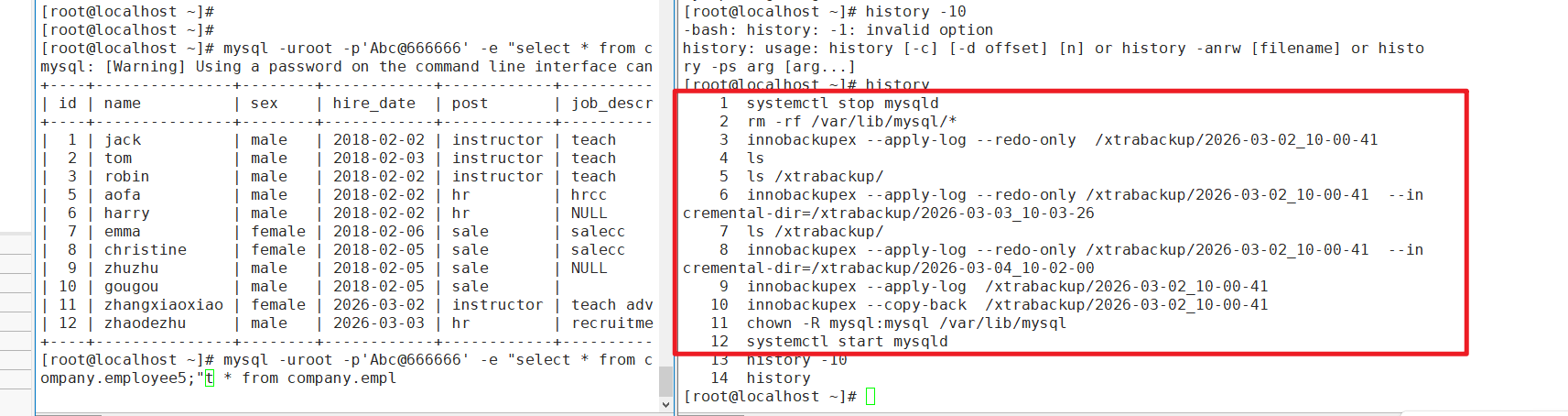 mysql -uroot -p'Qaz@666666' -e "FLUSH PRIVILEGES;"使用二进制日志恢复增量数据